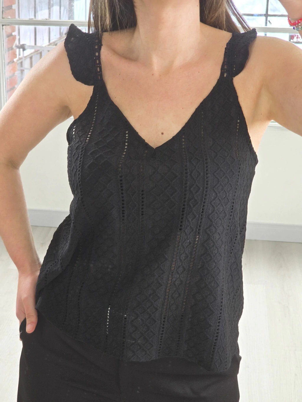 Agregá a tu guardarropa esta blusa única que realza tu estilo con un toque delicado y sofisticado. ¡No esperes más y disfrutá de la frescura y elegancia que solo nuestra Blusa Broderie de Punto con Guipur en Hombros puede ofrecerte!