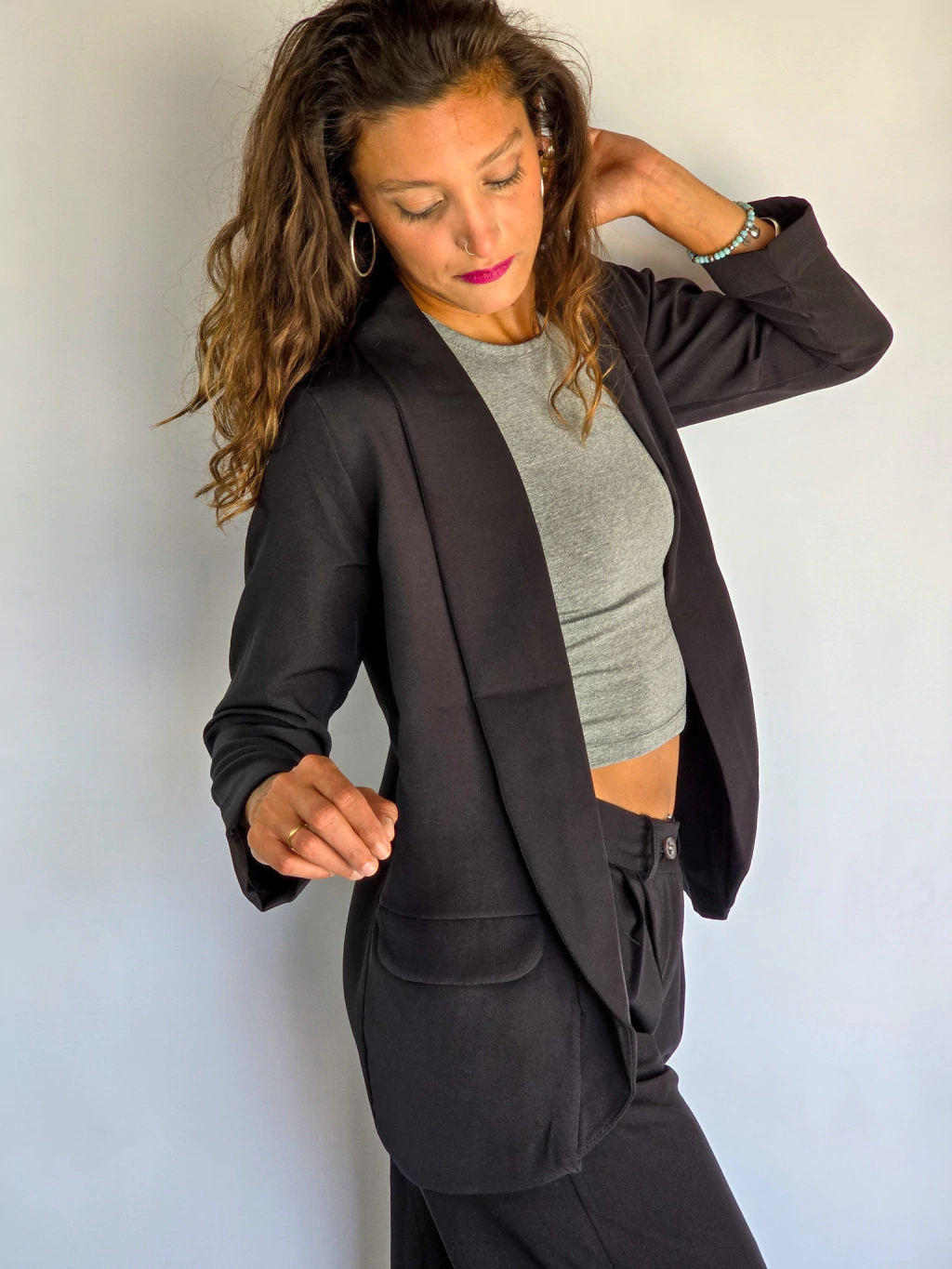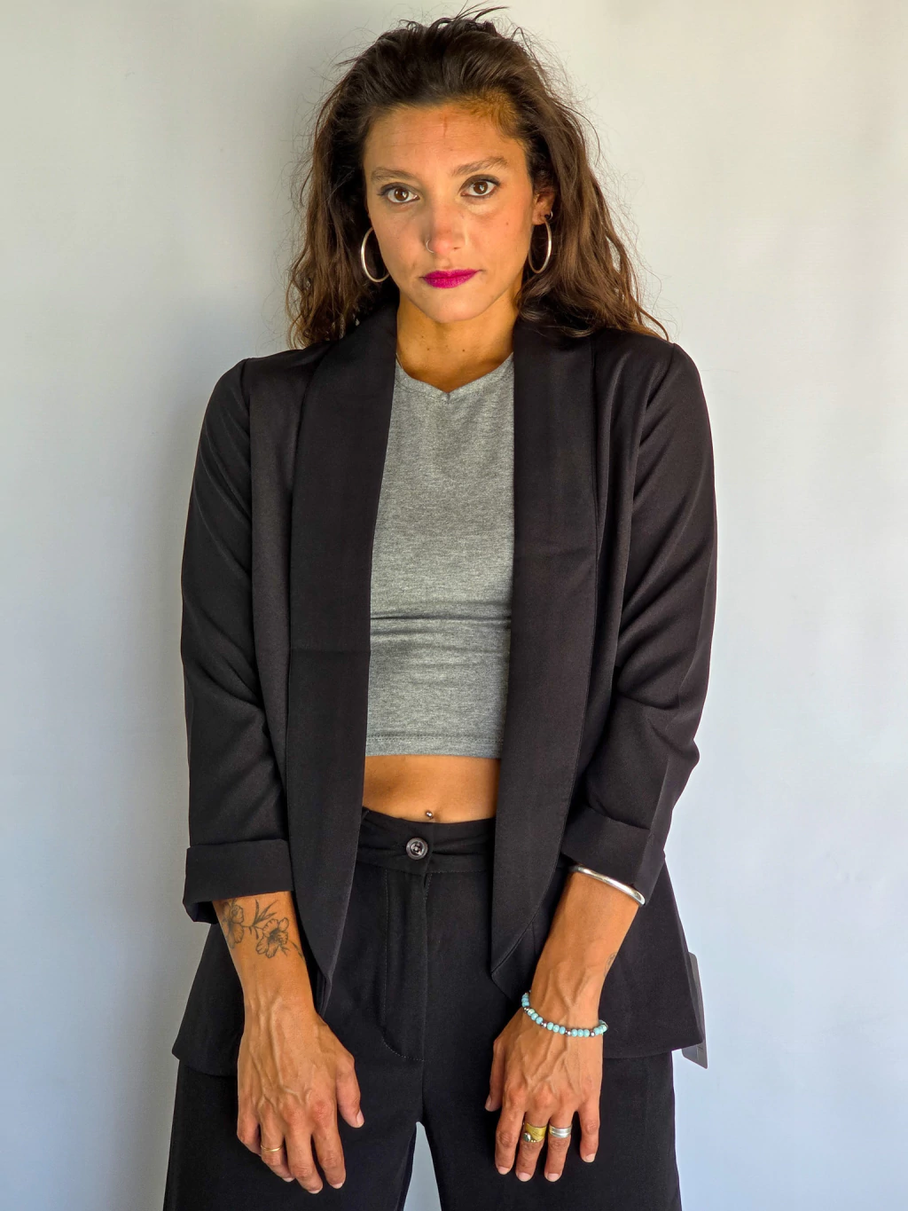 Blazer Sin Botones con Solapa y Bolsillos Falsos