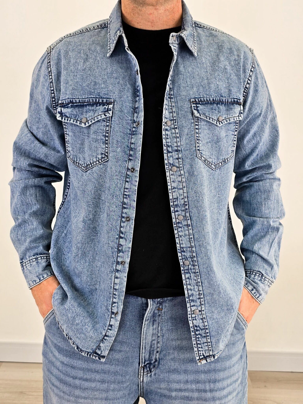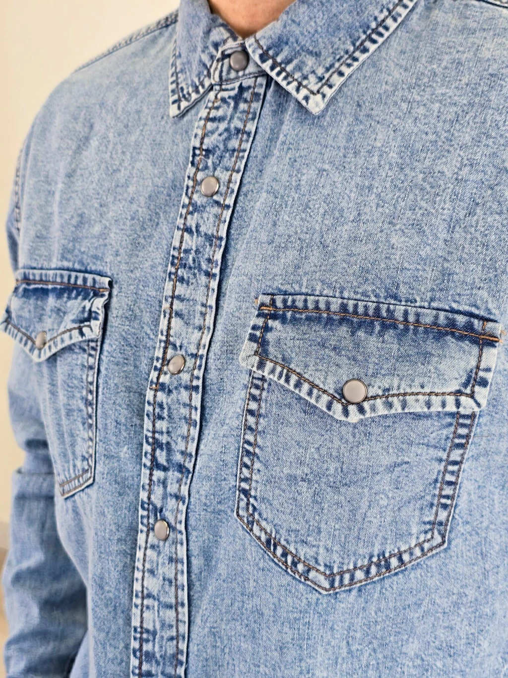 Camisa Denim con Lavado Enzimático y Efecto Decoloración: Estilo Único y Detalles que Enamoran