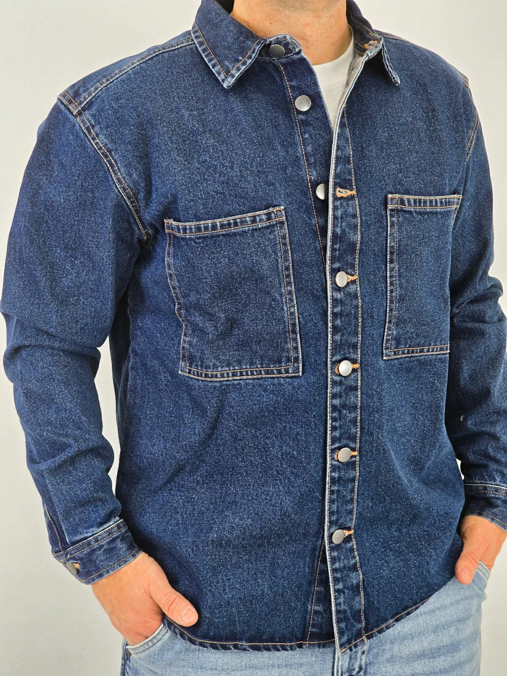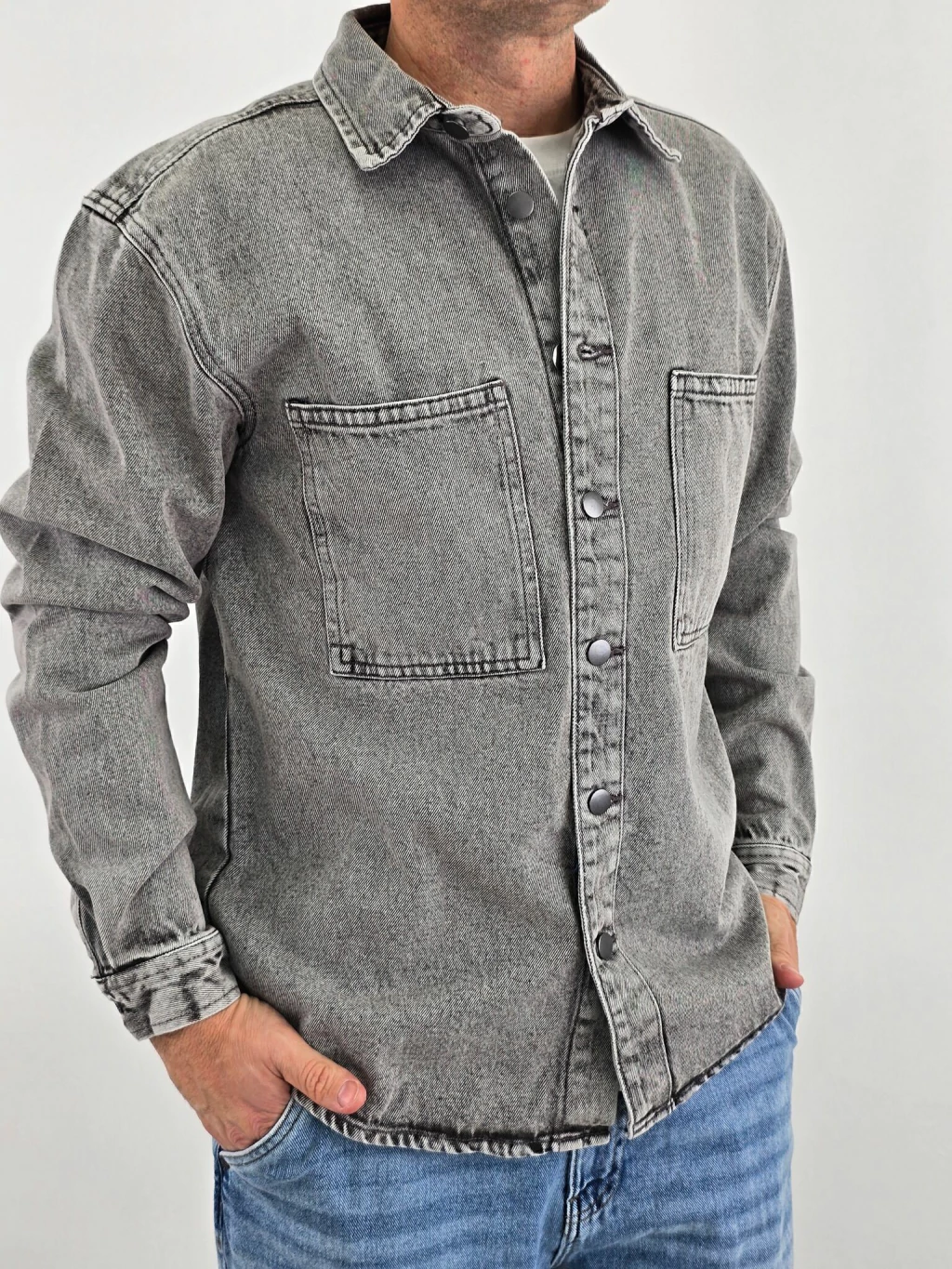 Camisaco Denim con Lavado Enzimático y Ácido – Estilo Urbano con Detalles Metálicos