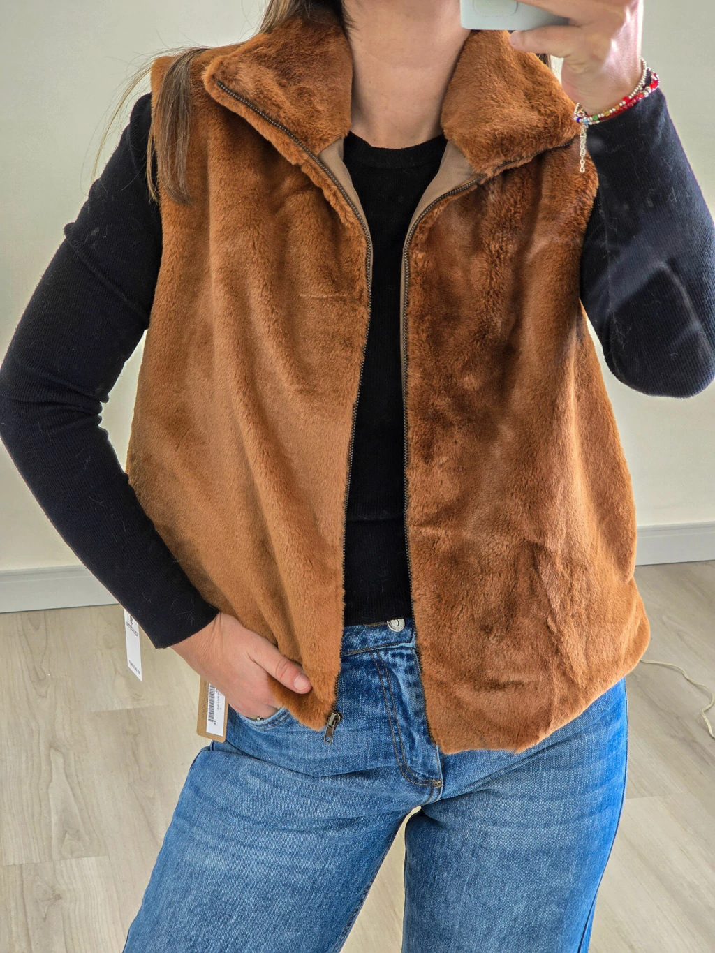 Chaleco de Piel Sintético con Cierre y Cuello Alto: Elegancia y Confort en Cada Detalle