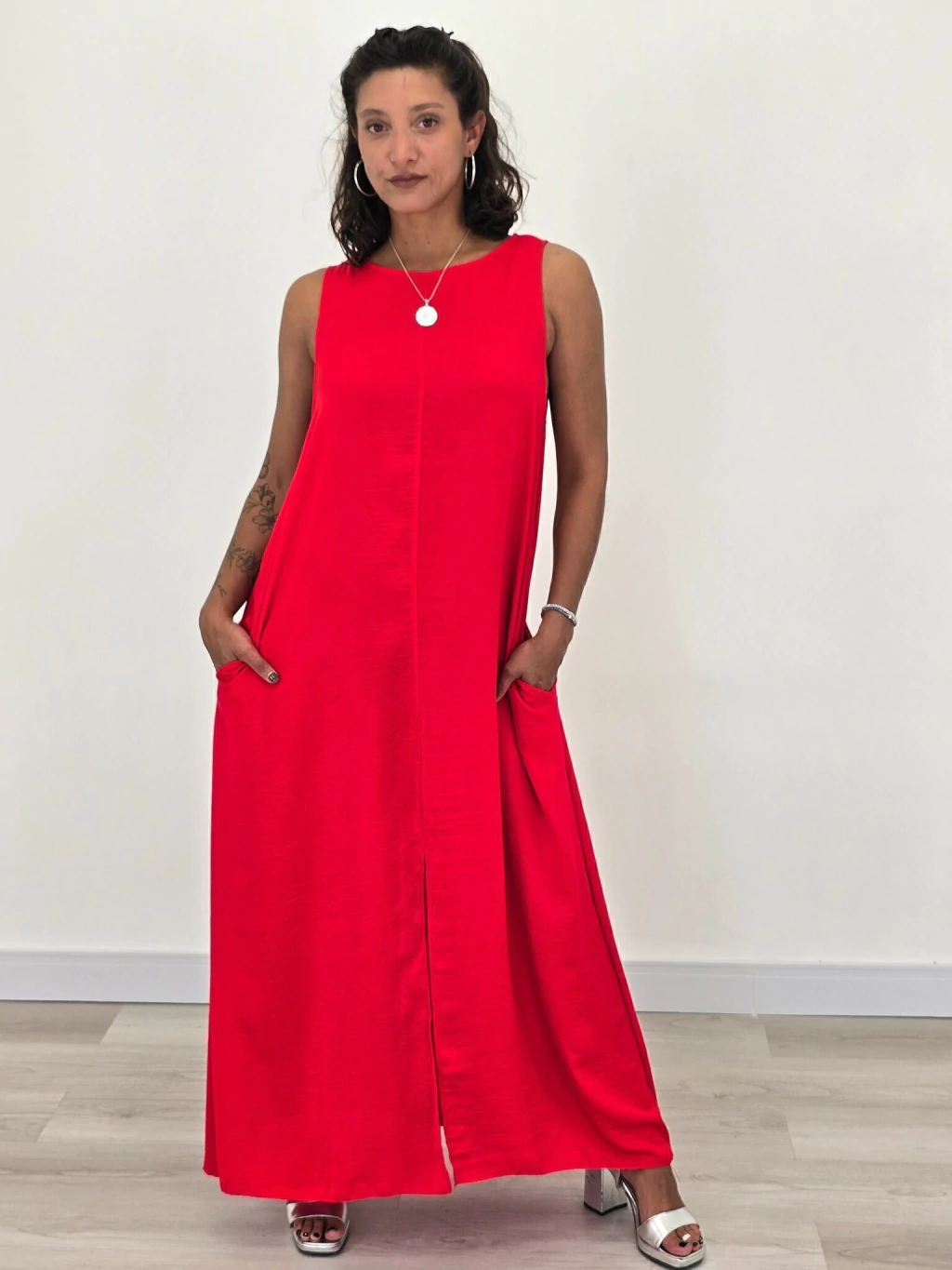 Descubrí un diseño que combina elegancia y comodidad en cada detalle. Nuestro vestido con costura en el medio y un sofisticado tajo en la parte delantera es la prenda perfecta para destacarte en cualquier ocasión.