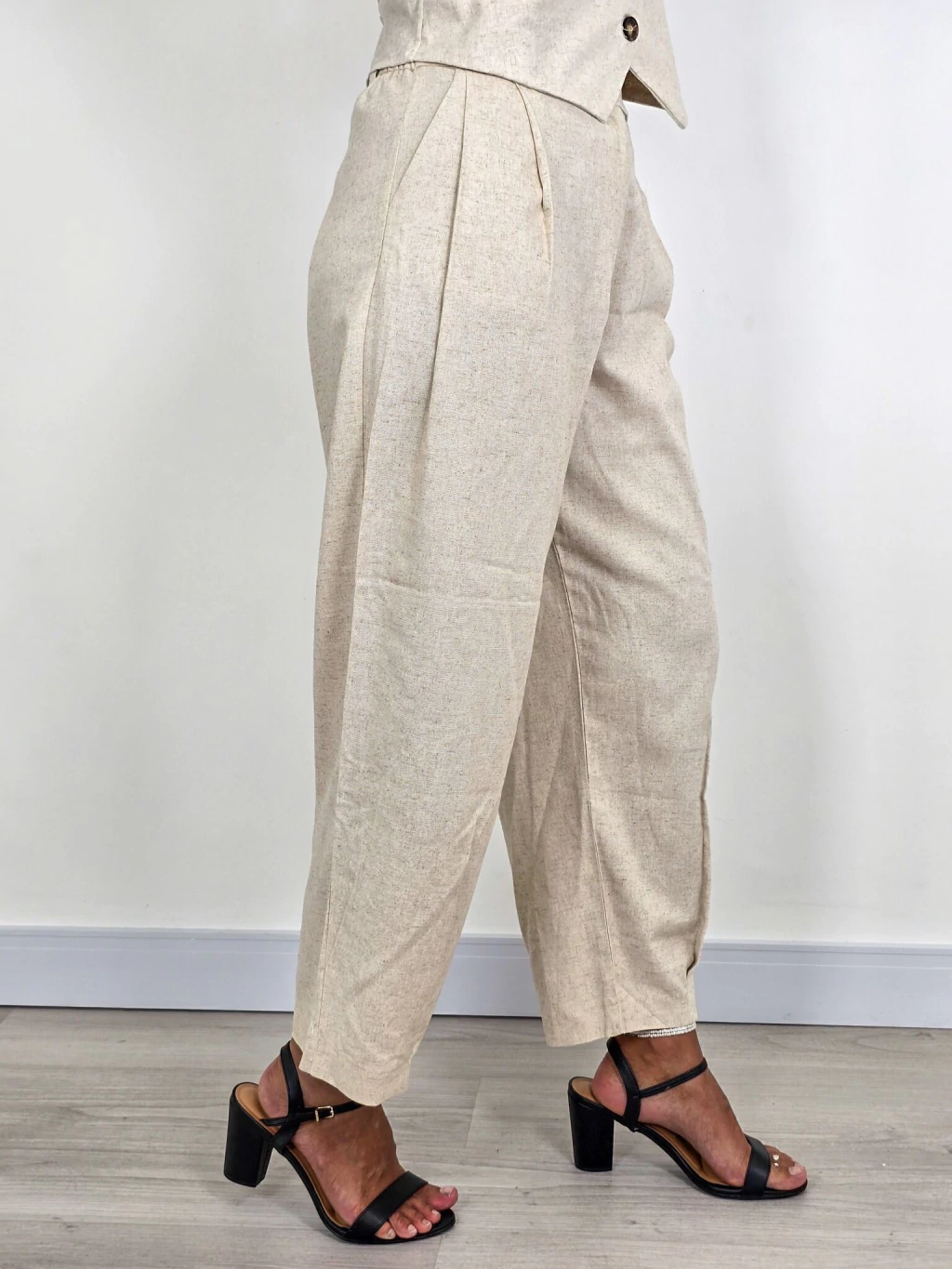 Pantalón de Lino Estilo Babucha con Botón Cruzado y Cintura Elástica