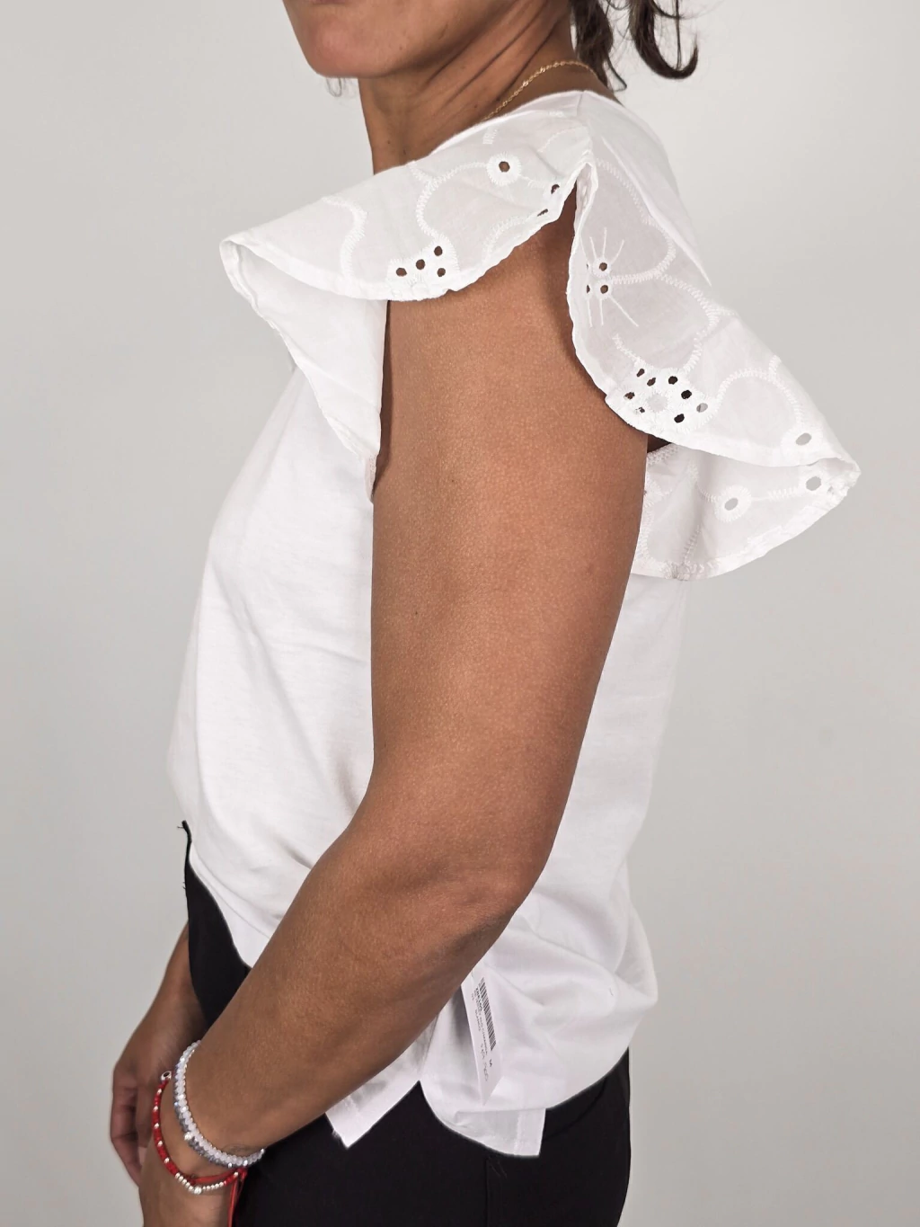 Remera de Jersey de Algodón con Manga de Broderie – Elegancia y Frescura en Cada Detalle