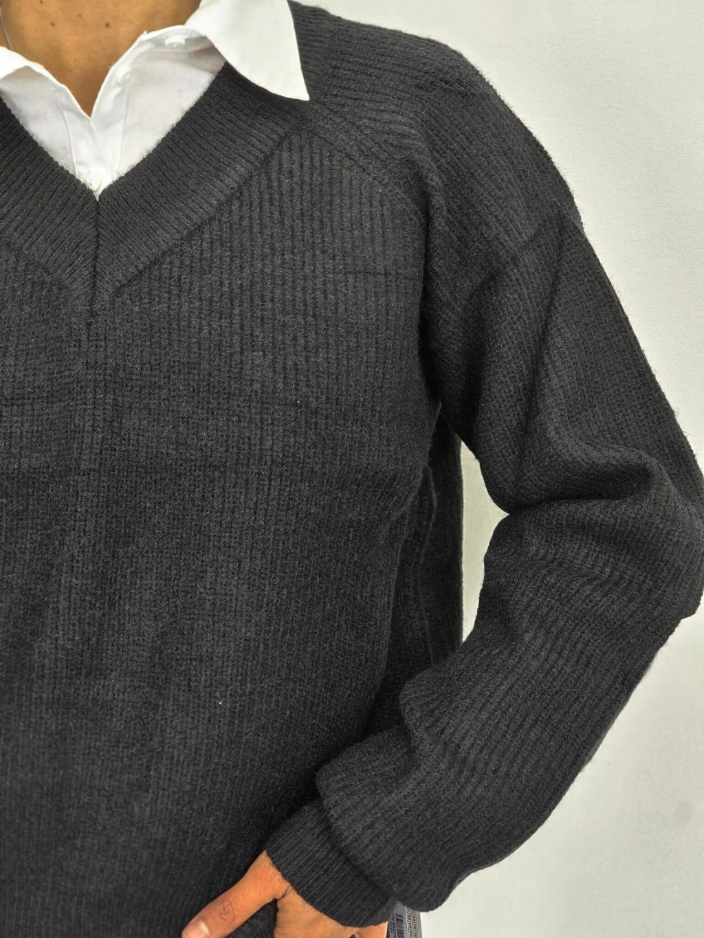 Sweater Escote V Clásico Tejido Grueso: Calidez y Estilo que Enamoran