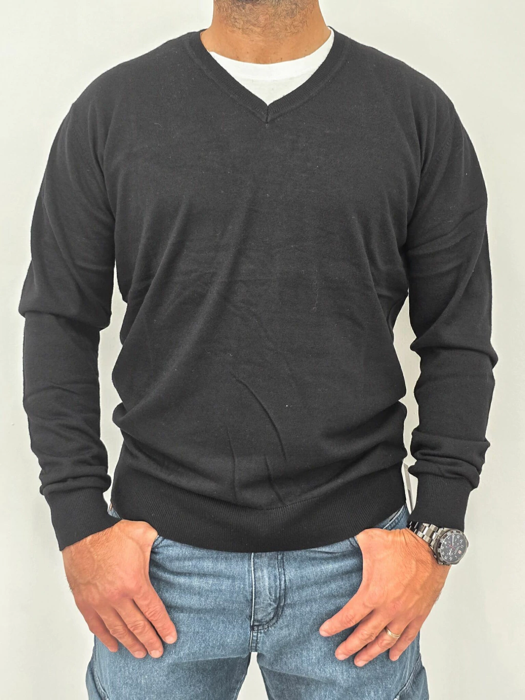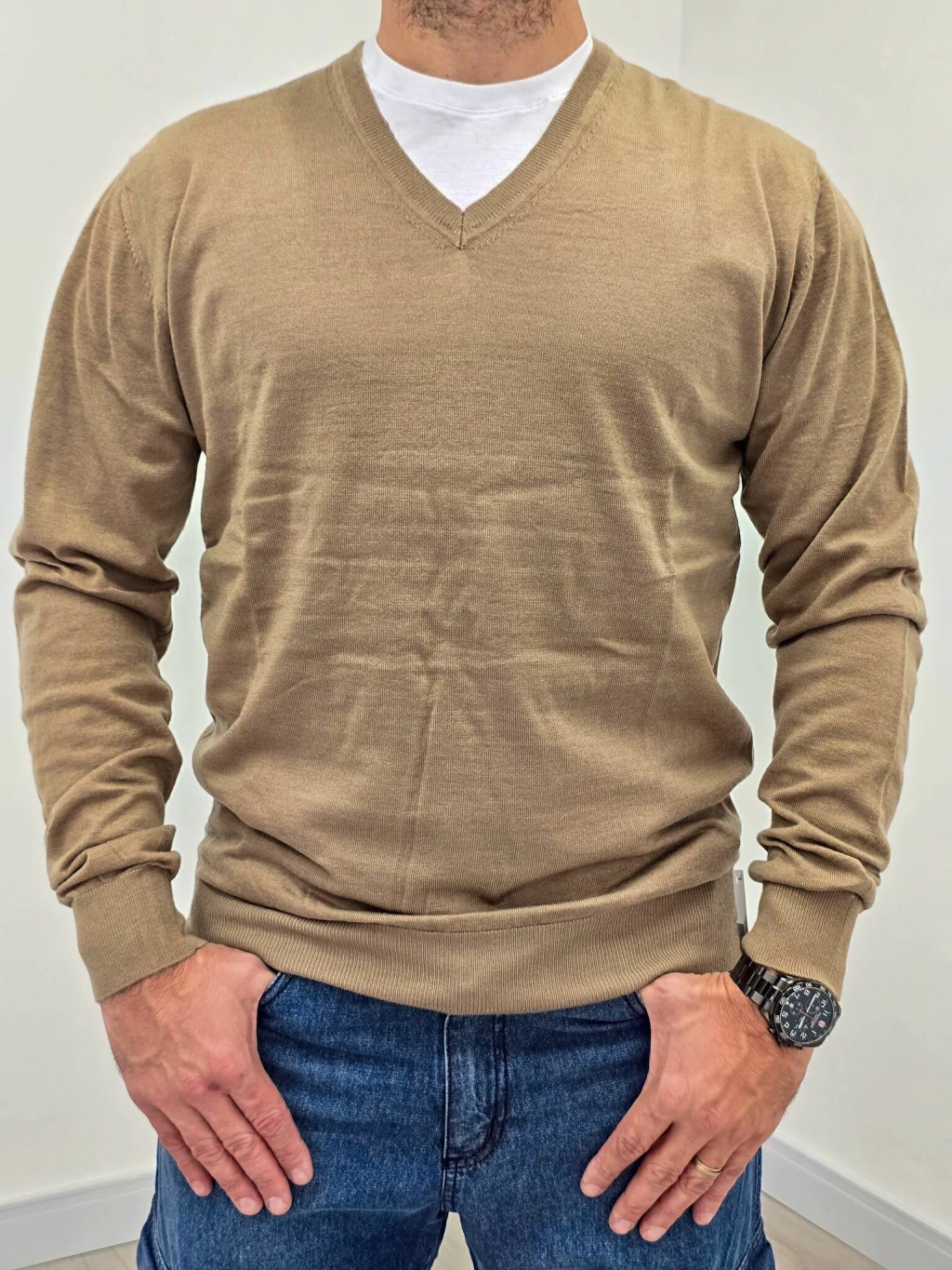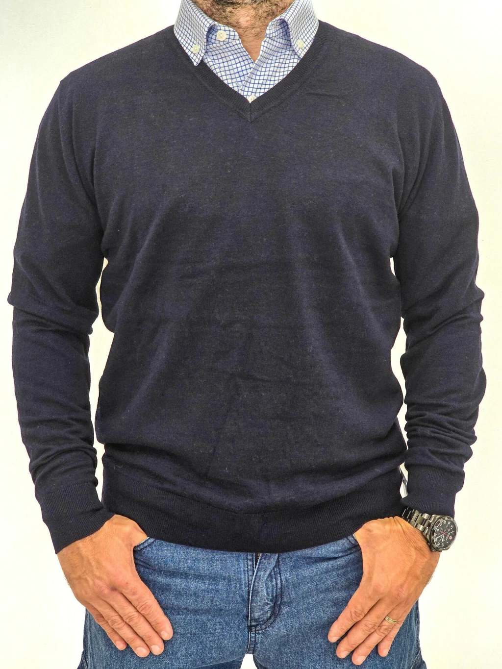 Este sweater es la elección perfecta para quienes buscan un estilo clásico con un toque sofisticado, ideal para cualquier ocasión. Su escote en V realza el cuello y permite combinarlo fácilmente con camisas o accesorios, creando looks versátiles que acompañan tu día a día con distinción.