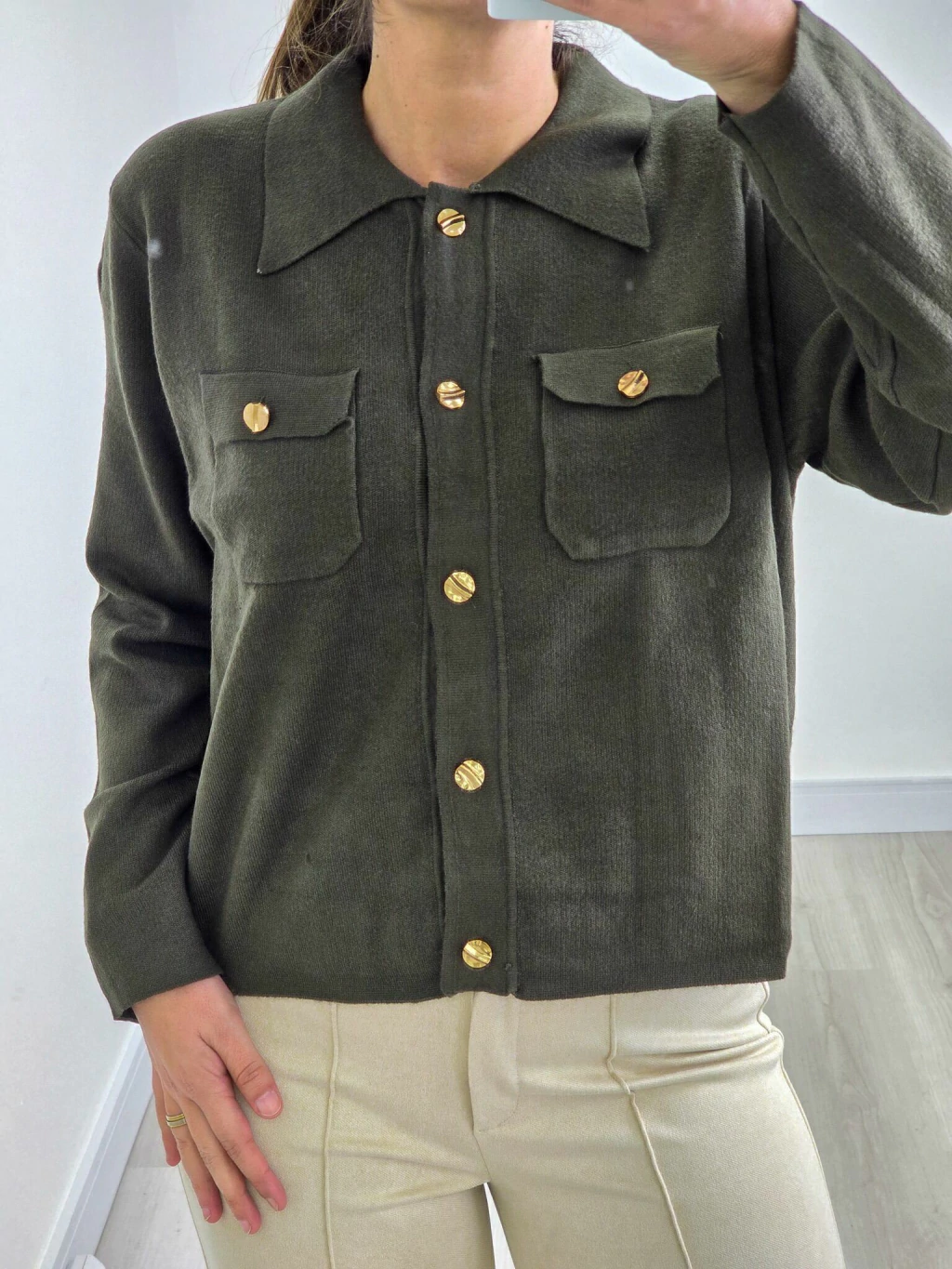 Descubrí el estilo y la comodidad con nuestra hermosa Campera Tejida, un imprescindible para cualquier guardarropa. Esta prenda destaca por sus elegantes botones dorados y prácticos bolsillos con solapa, que la convierten en la elección perfecta para lucir sofisticada en cualquier ocasión.
