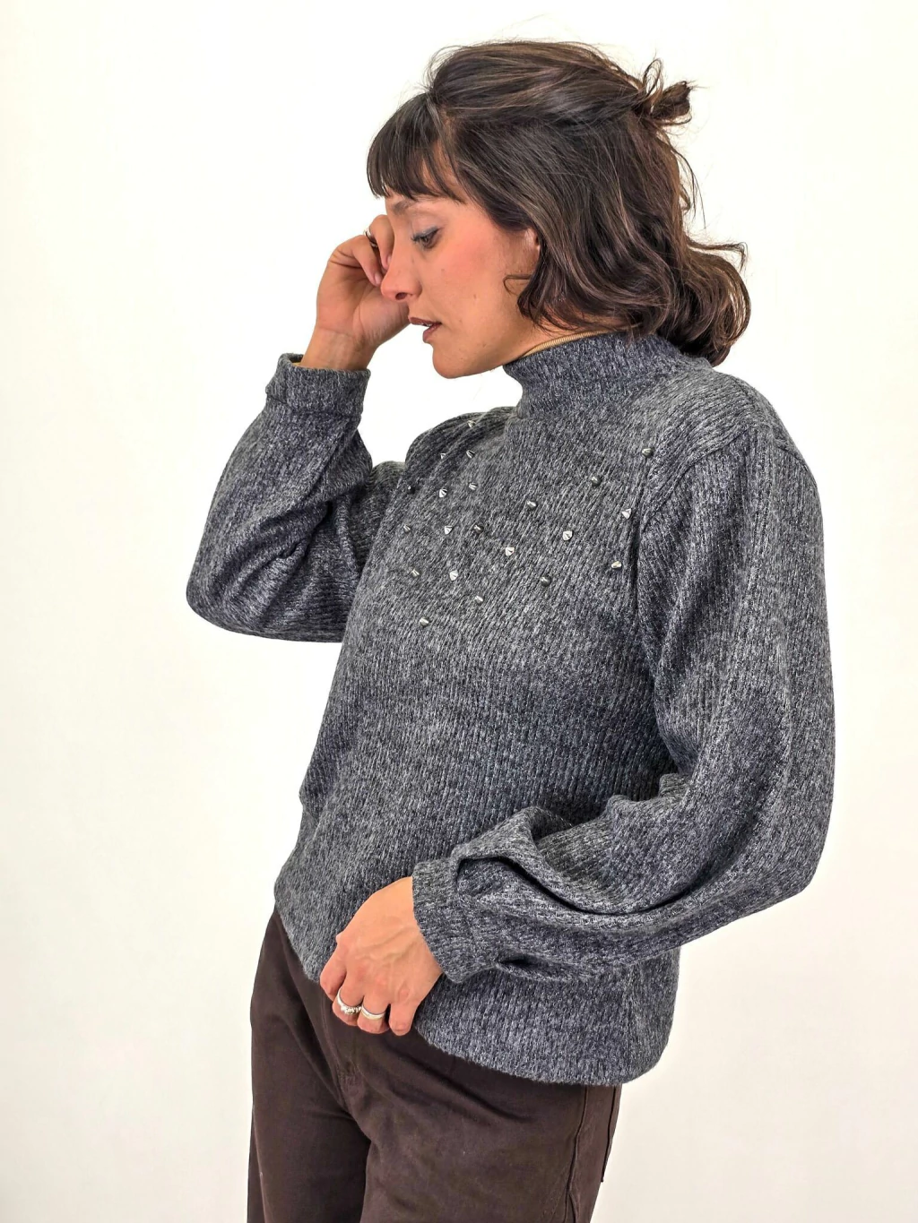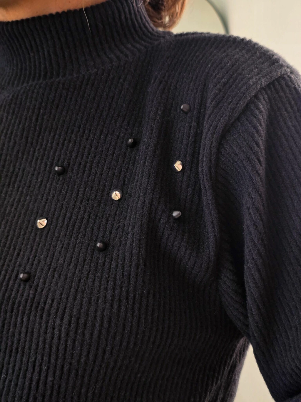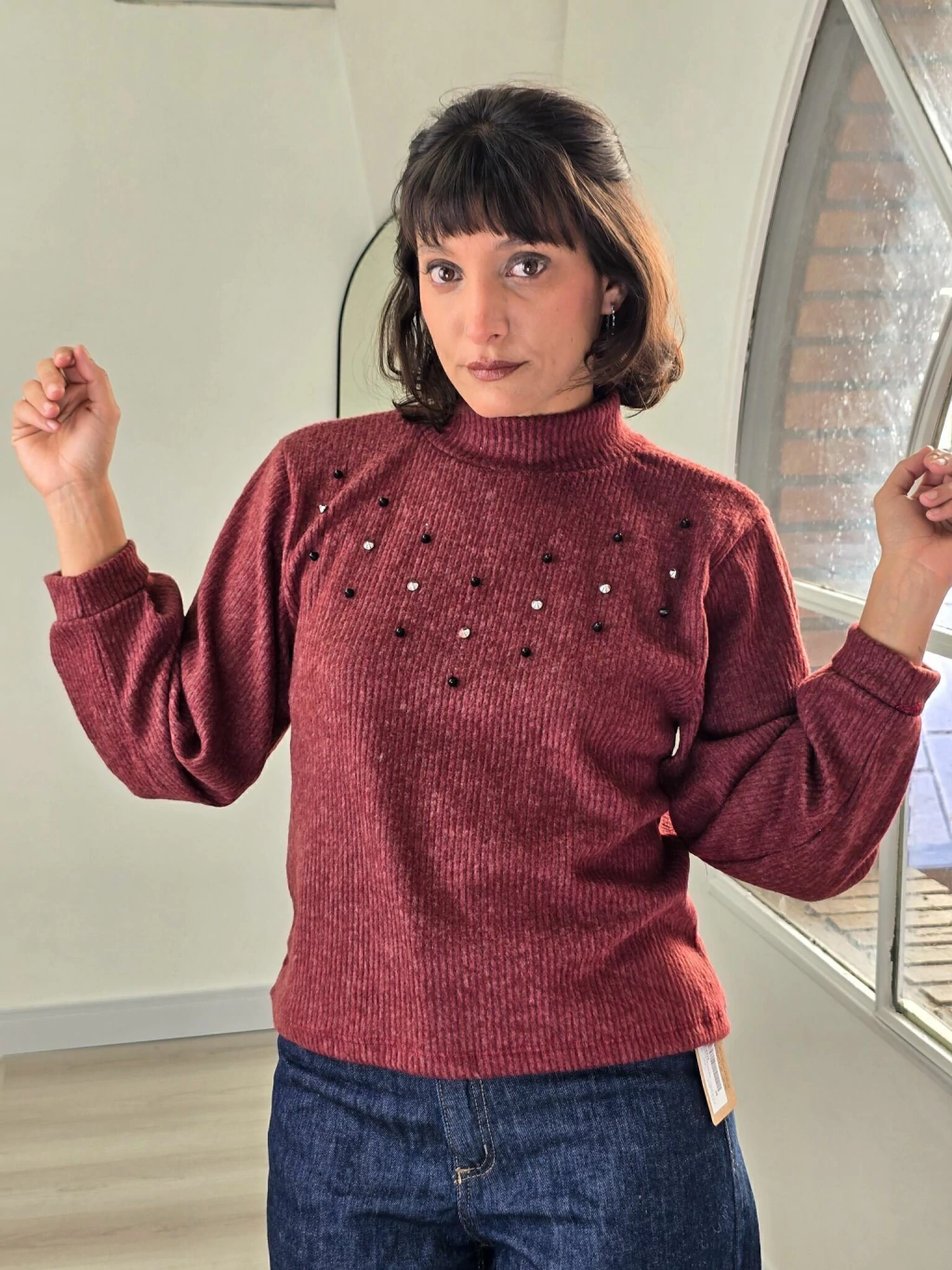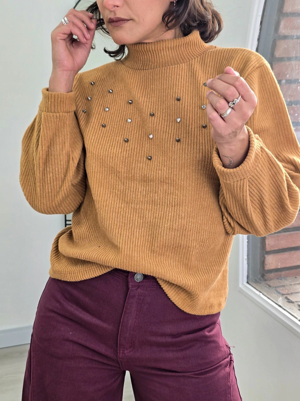 Sweater de Lanilla Brush con Tachas y Mangas Globo: Elegancia y Originalidad en una sola prenda