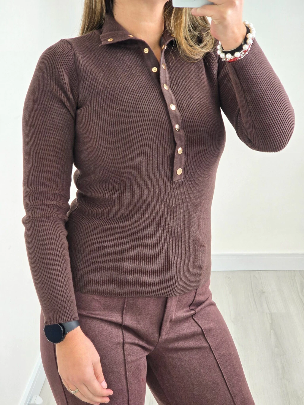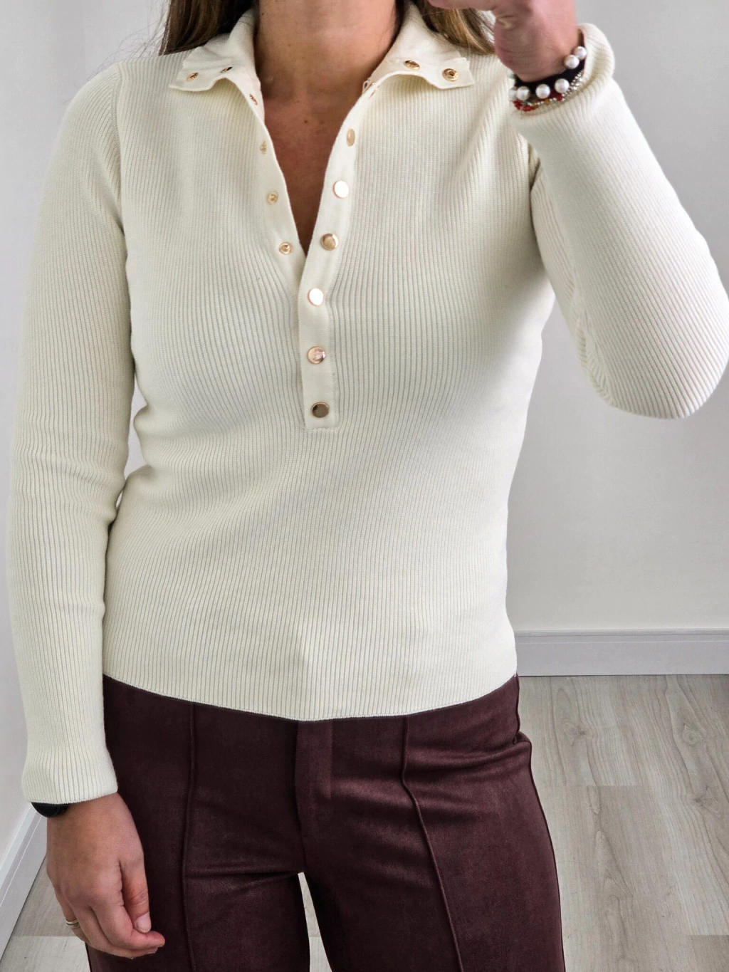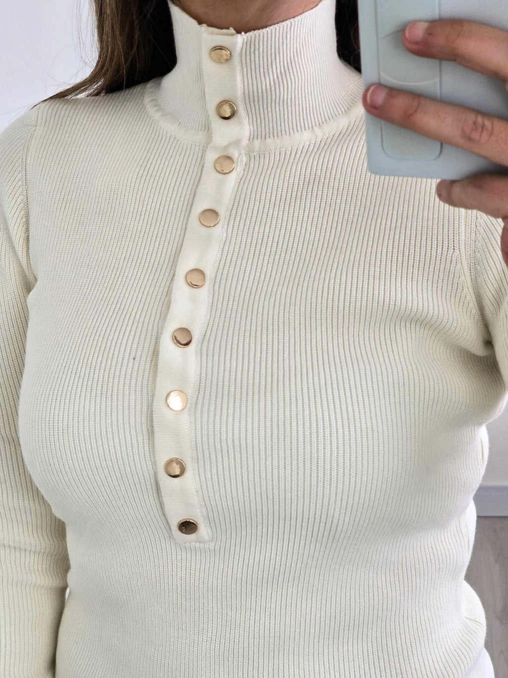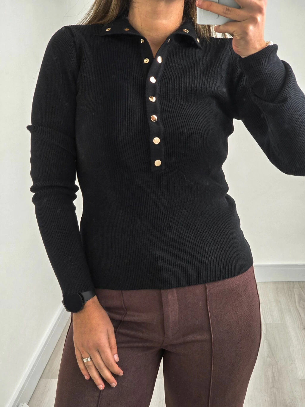 Con su diseño moderno y detalles en snaps metálicos, esta polera es ideal para combinar con diversos outfits, ya sea para un look casual o una salida más elegante. ¡No dejes pasar la oportunidad de tenerla en tu colección! Haz tu compra ahora y destaca con estilo.